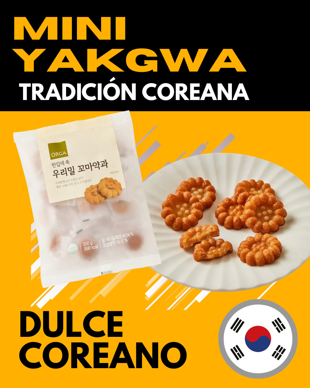 Disfruta del dulce y suave Mini Yakgwa, galletas tradicionales coreanas de miel elaboradas con trigo 100% coreano. En tamaño mini, perfectas para picar, regalar o acompañar el té, ¡un auténtico sabor de la tradición coreana!